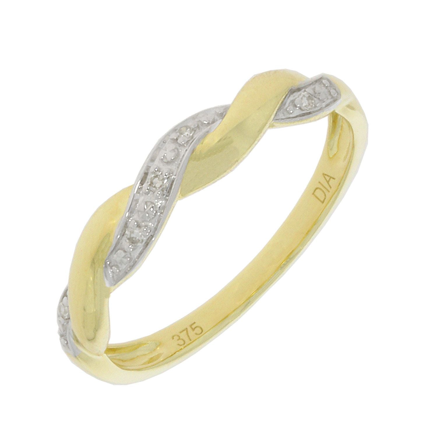 9ct Yellow & White Gold 0.02ct Diamond Plait Ring N