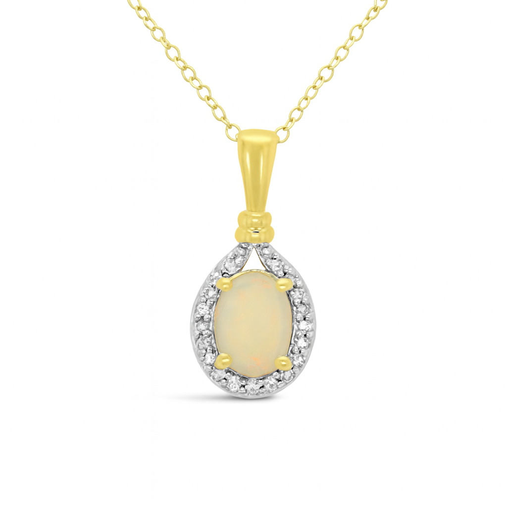 9ct Yellow Gold Oval Cut Opal & 0.07ct Diamond Pendant