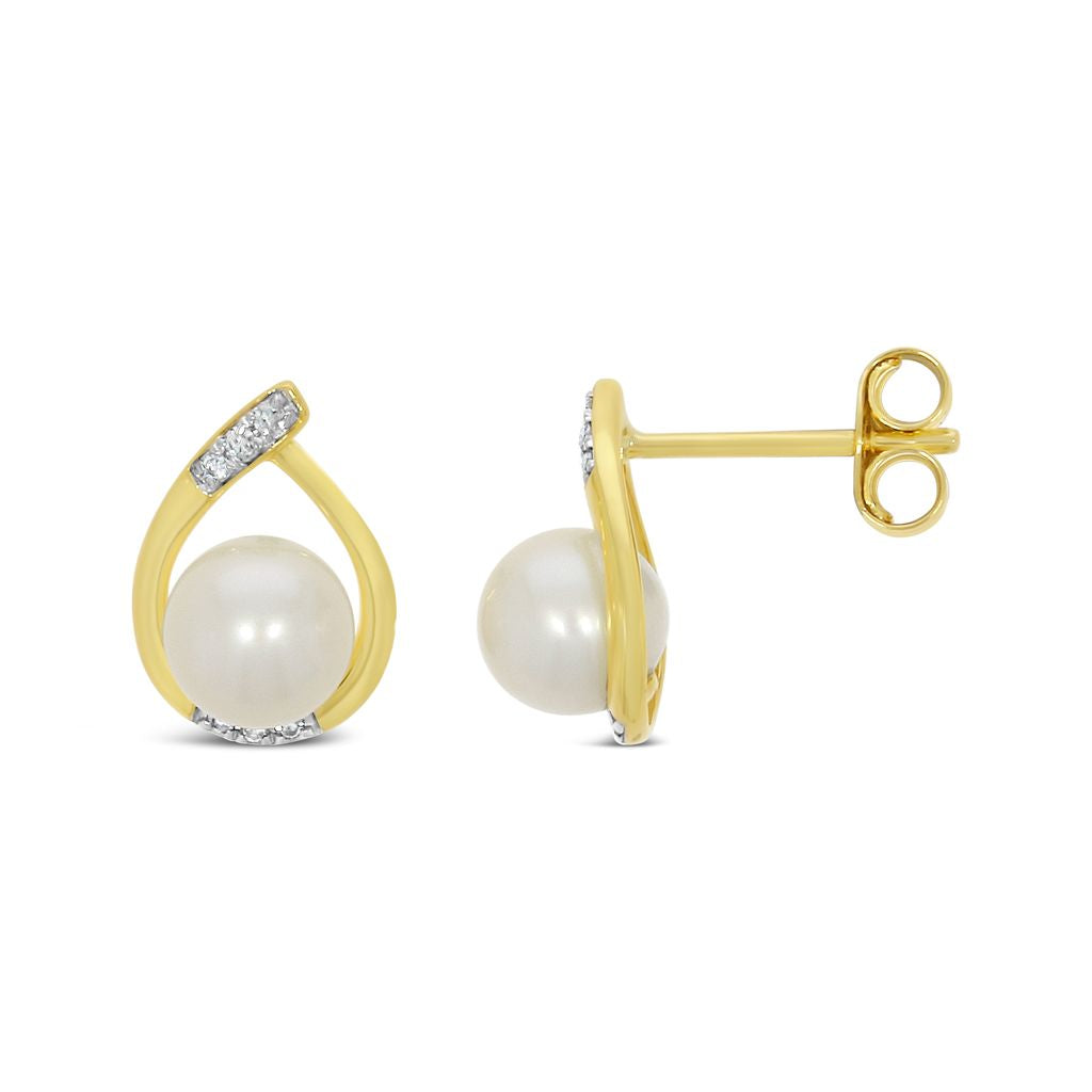 9ct Yellow Gold Freshwater Pearl & 0.04ct Diamond Studs