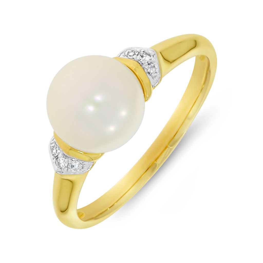 9ct Yellow Gold Freshwater Pearl & 0.03ct Diamond Ring Size N