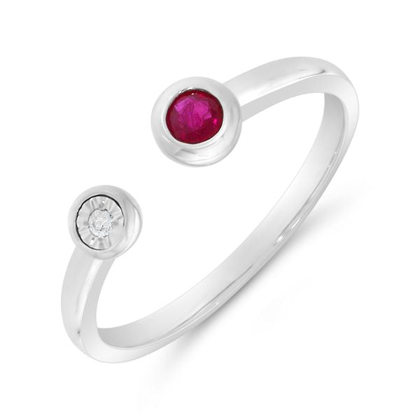 9ct White Gold 0.01ct Diamond & Ruby Torque Ring K 1/2