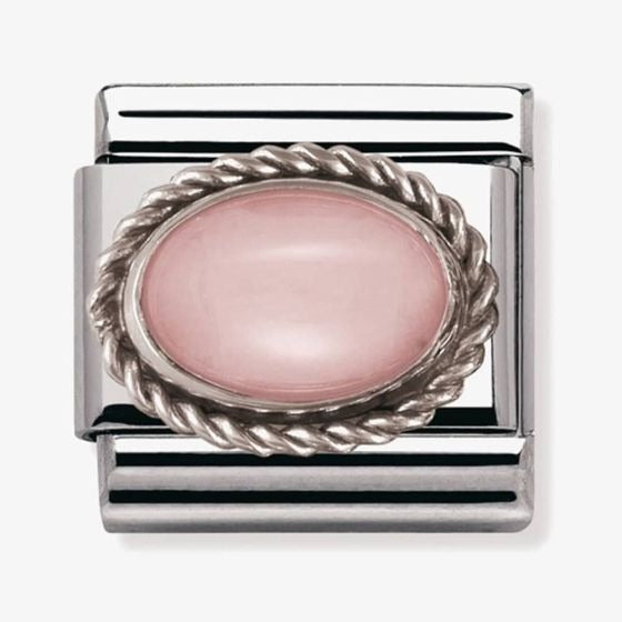 The Nomination pink opaline charm features a piece of pink opaline surrounded in twisted sterling silver and set on a bed of stainless steel. This is a truly beautiful addition to any composable bracelet and will certainly add an air of elegance.