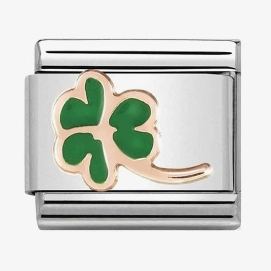 This adorable charm will give it's wearer good fortune. The charm features a 9ct rose gold green enamel set four leaf clover.