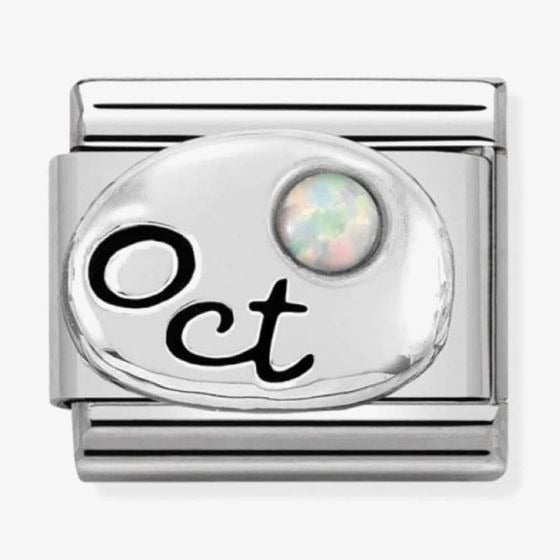 Celebrate your birth month with this stainless steel link for the Composable CLASSIC bracelet featuring a white Opal stone with the wording 'Oct' in black enamel.