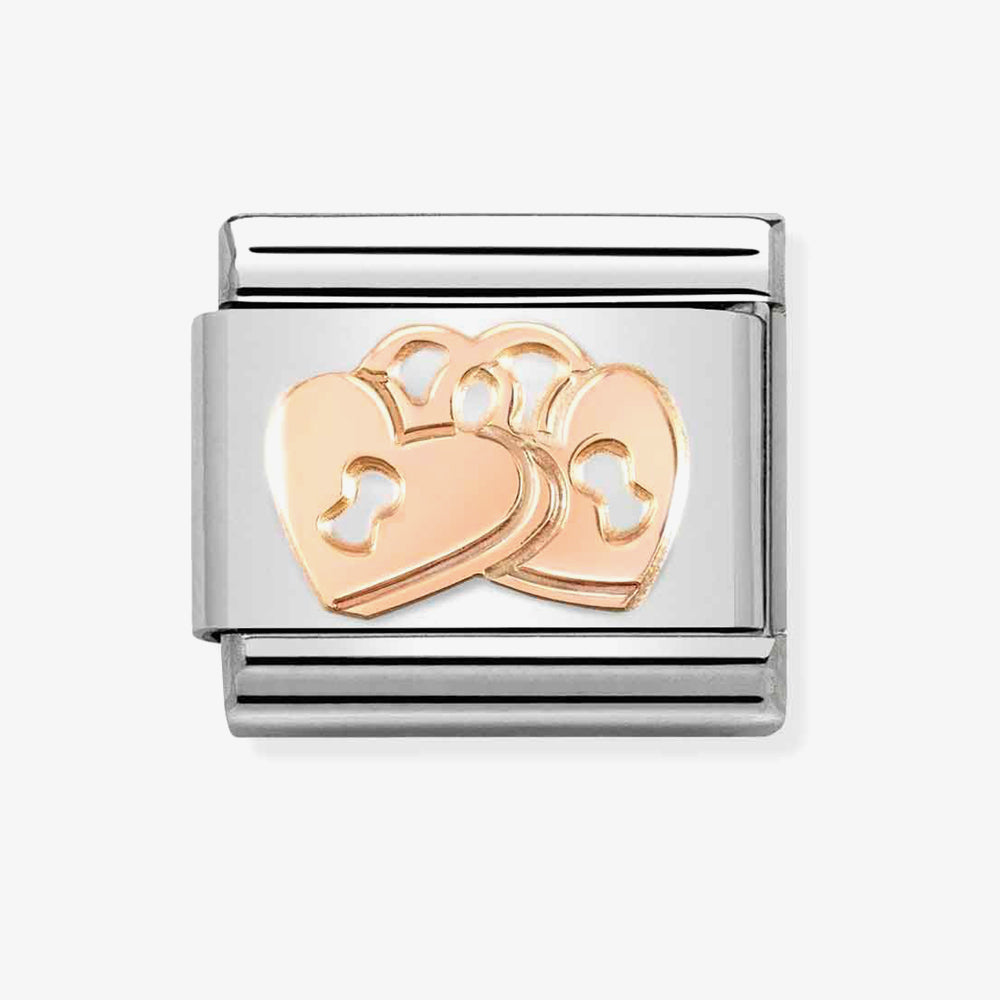 Original Nomination Link for Composable Classic Bracelets in stainless steel and 9K rose gold with Padlock Hearts symbol. Made in Italy. If you have found someone to spend your life with, this is the Link for you.