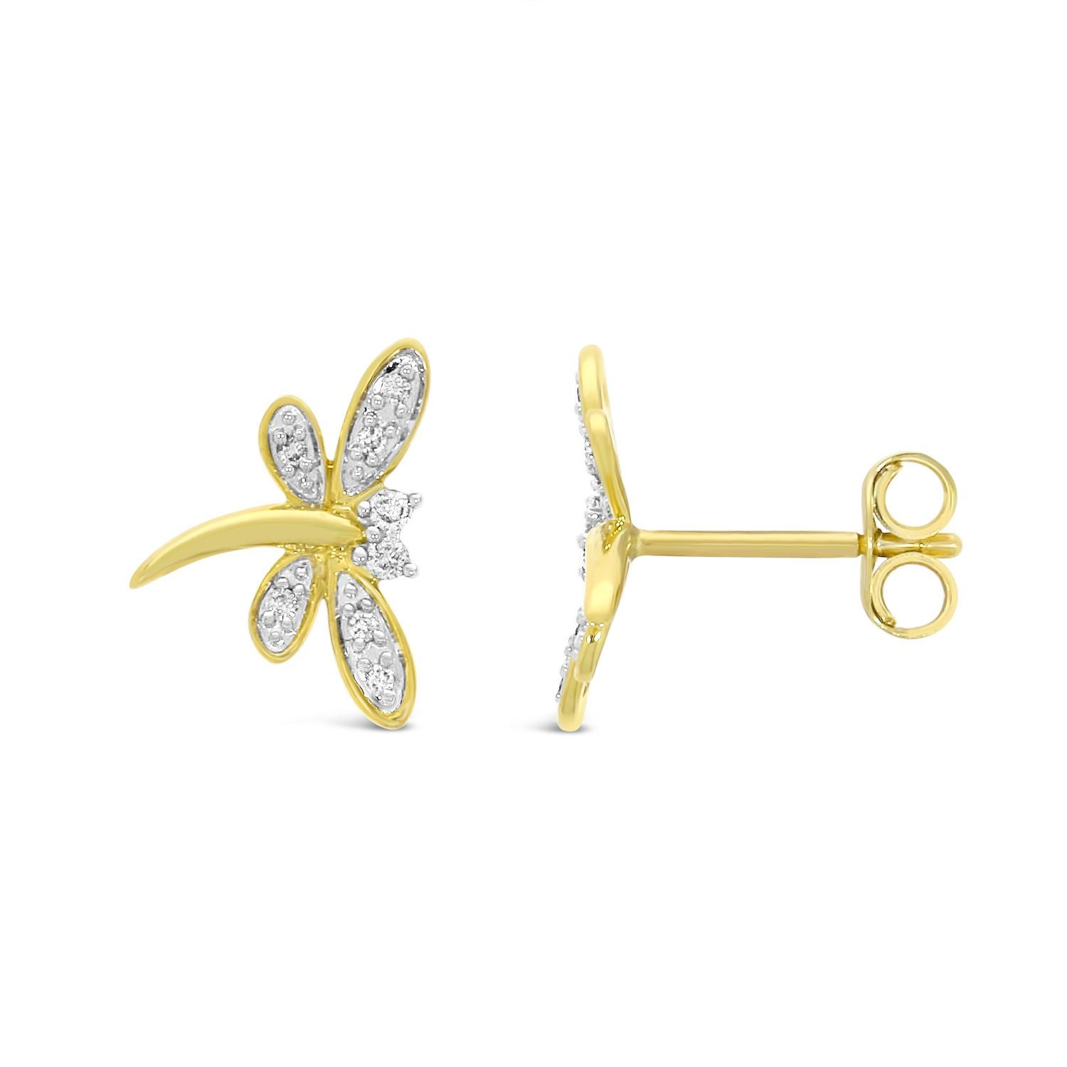 9ct Yellow Gold 0.10ct Diamond Dragonfly Studs