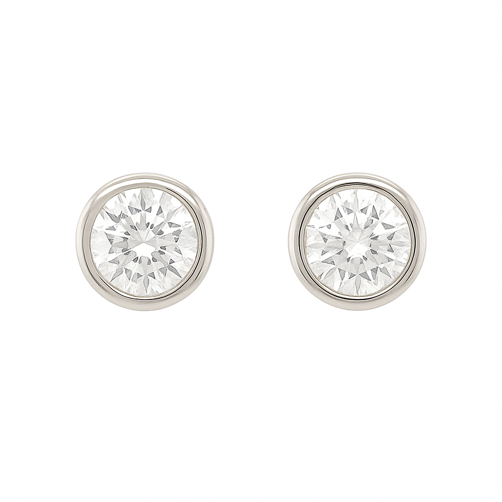 This pair of 9ct white gold earrings beautifully captures the light, and features 0.25ct round cut diamonds in a bezel setting to ensure stability without compromising on sparkle. Secured with a scroll and post closure.