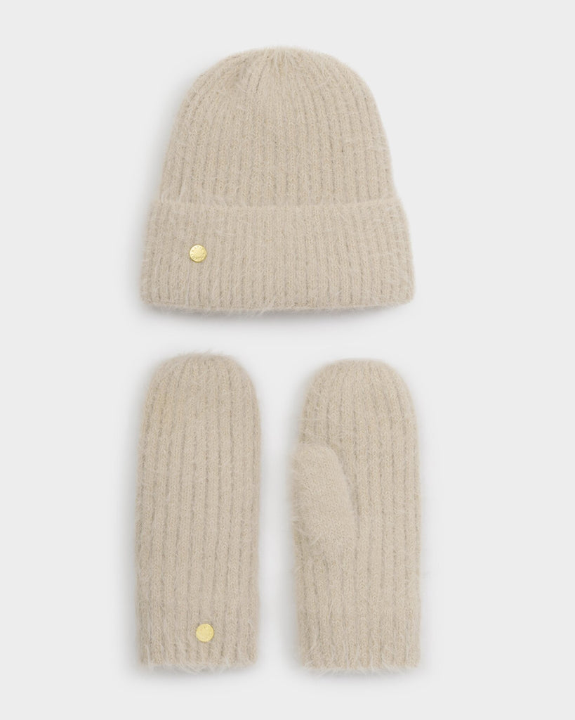 Gift Boxed Taupe Hat & Mittens Set