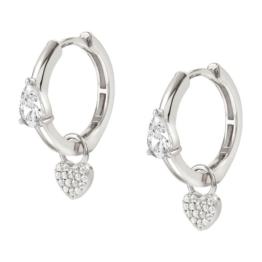 Lucentissima Silver Cubic Zirconia Heart Hoop Earrings