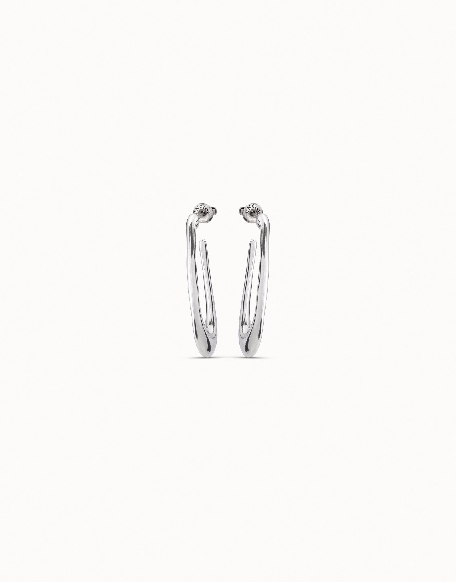 Silver-plated, irregular oval-shaped hoop earring. Hand-crafted in Spain.