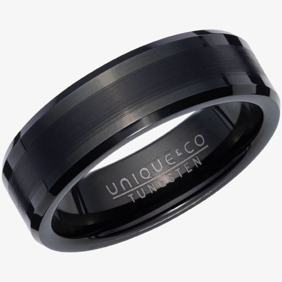 The Unique Black Tungsten 7mm Ring TUR-134 is created in tungsten with black plating and has a band width of 7mm.