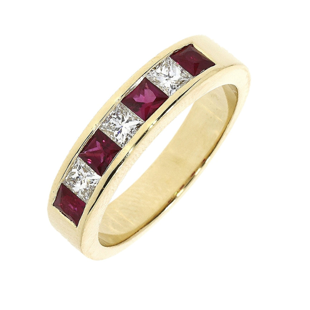 18ct Yellow Gold Princess Cut 0.47ct Diamond & 0.70ct Ruby Eternity Ring O