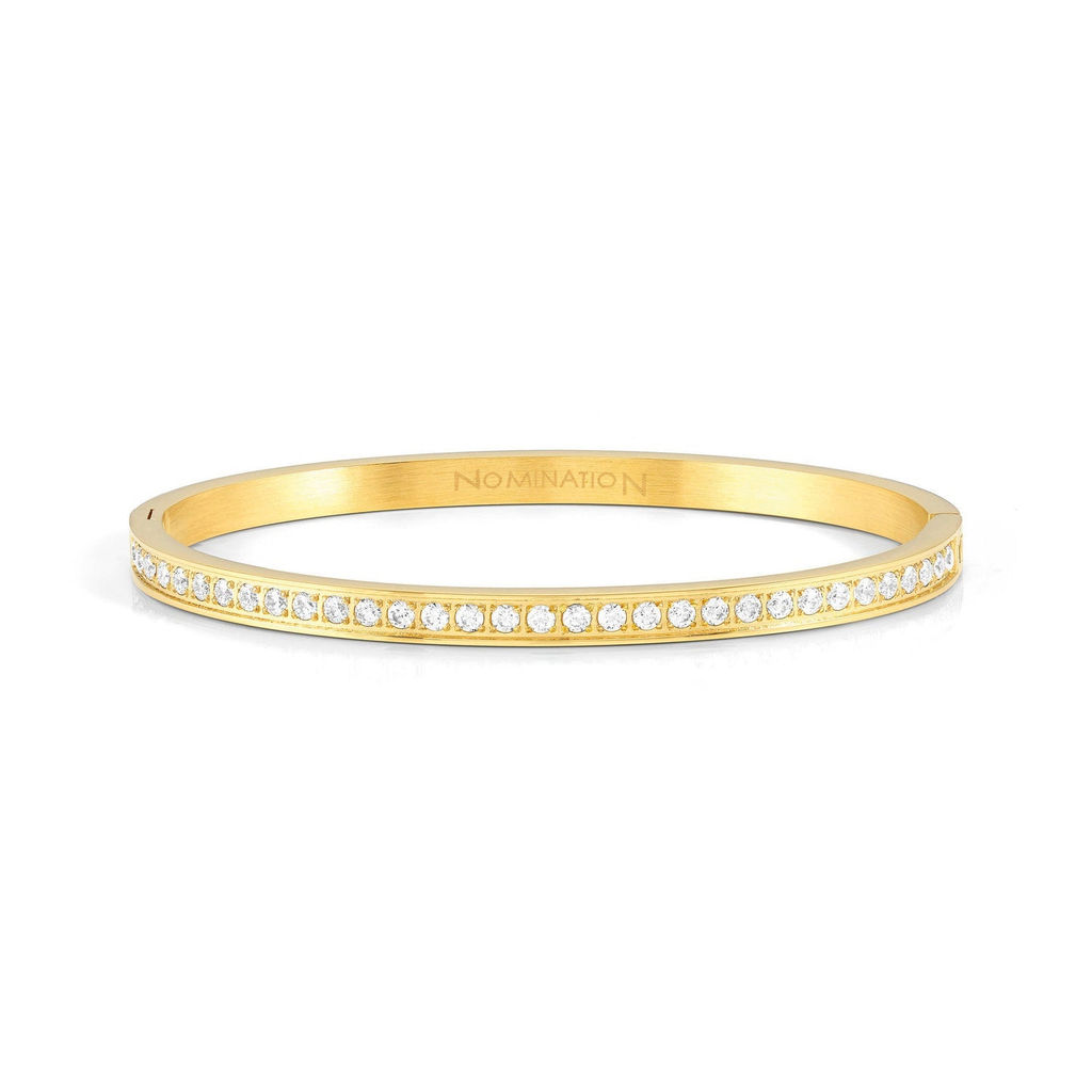 Yellow Gold Bangle with White Cubic Zirconia (Large)