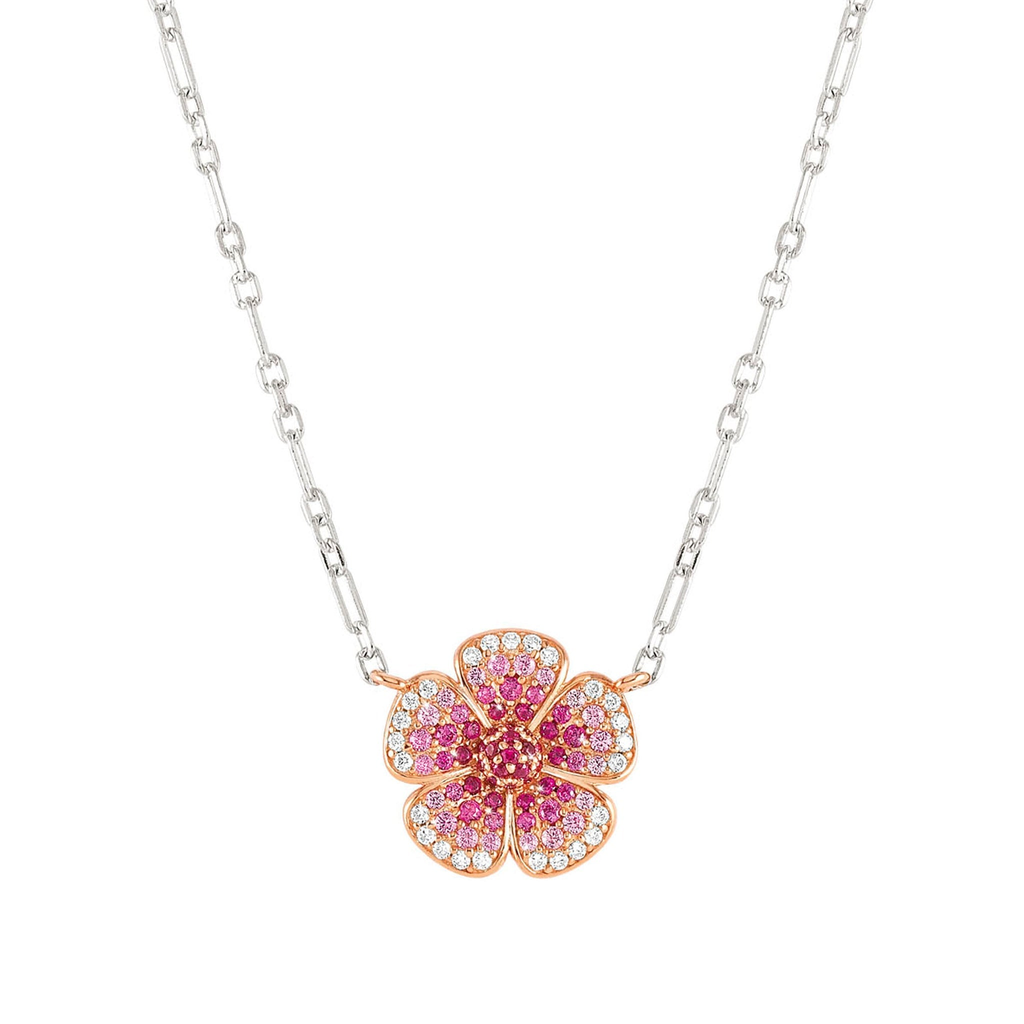 Crysalis Sterling Silver Pink Cubic Zirconia Flower Necklace