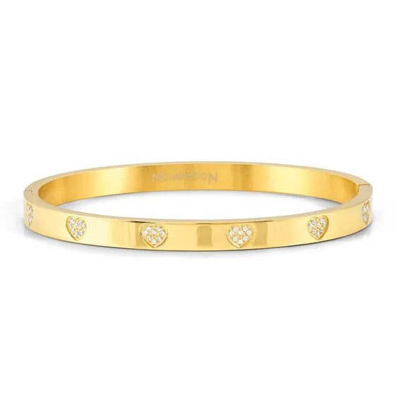 Yellow Gold Bangle with White Cubic Zirconia Heart Detail (Large)
