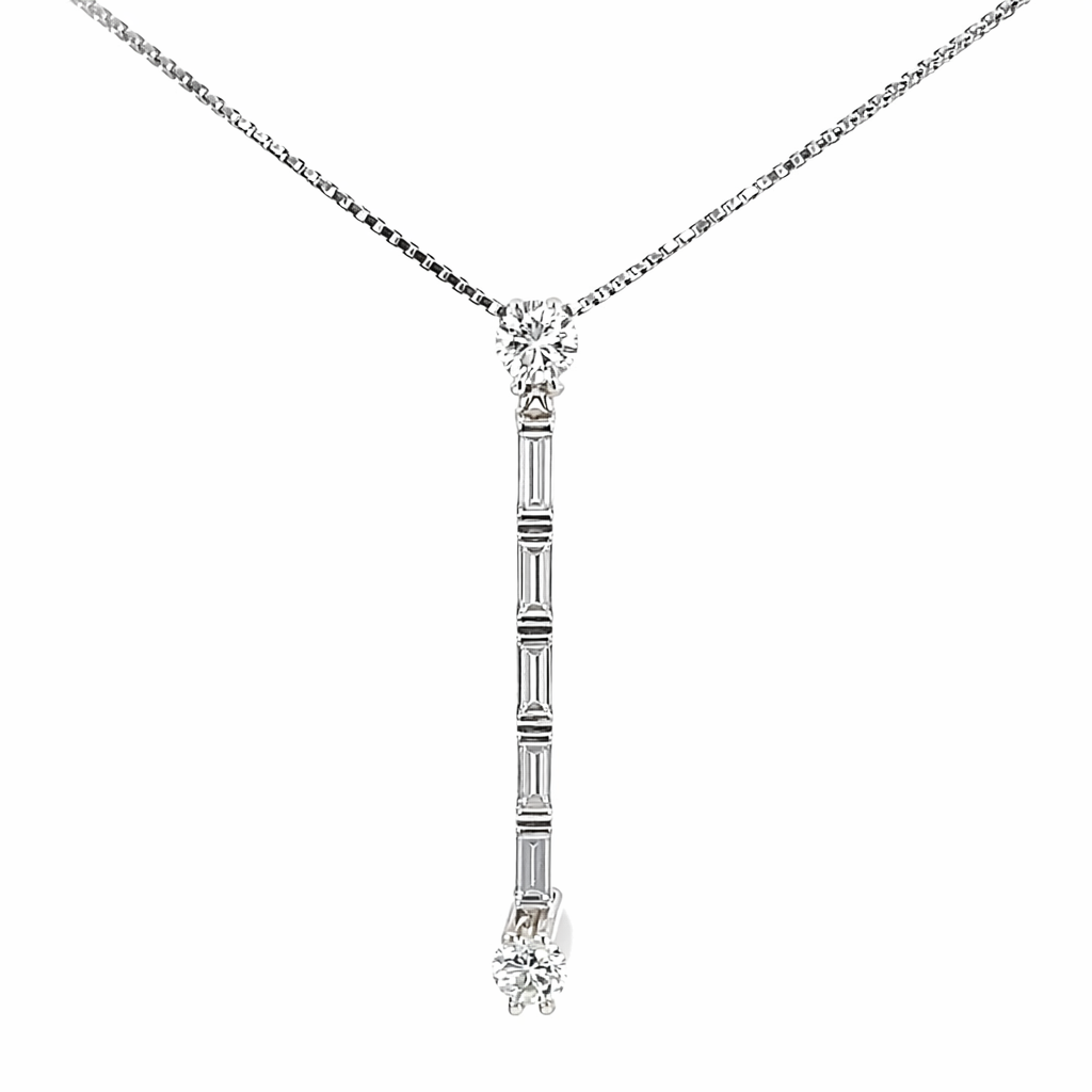 18ct White Gold Baguette Cut 0.53ct Diamond Drop Necklace