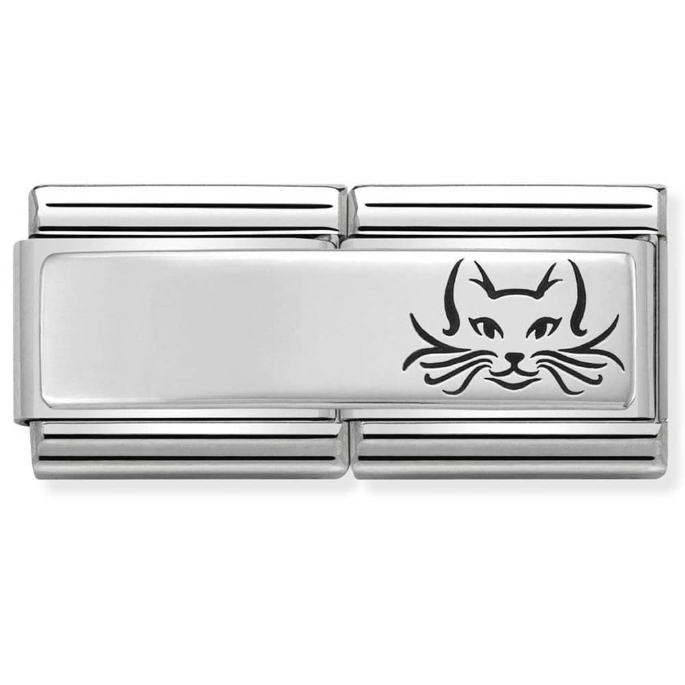Original tile for Nomination Classic Composable bracelet with double Link in Sterling Silver and enamel cat. Made in Italy. Inscribe the name of your cat on this link and carry it with you always.
