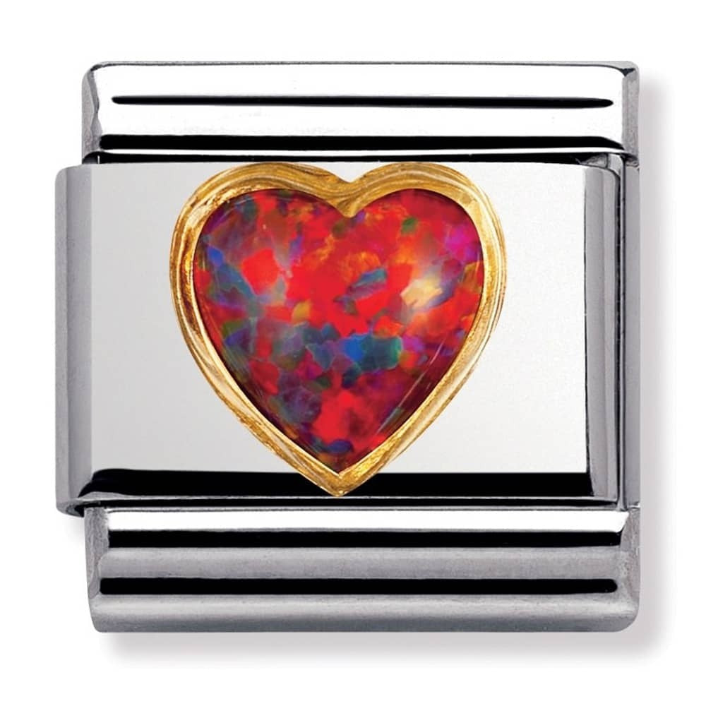 Classic Charm for Original Composable Bracelet with Heart symbol in stainless steel, 18K gold and red opal. Made in Italy.