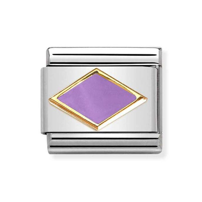 Original Nomination Classic Link in stainless steel and 18K yellow gold with Rhombus symbol with Lilac enamel. Made in Italy. Lilac is a new Must Have colour - Give your bracelet a touch of Wow! with this seasons colour.