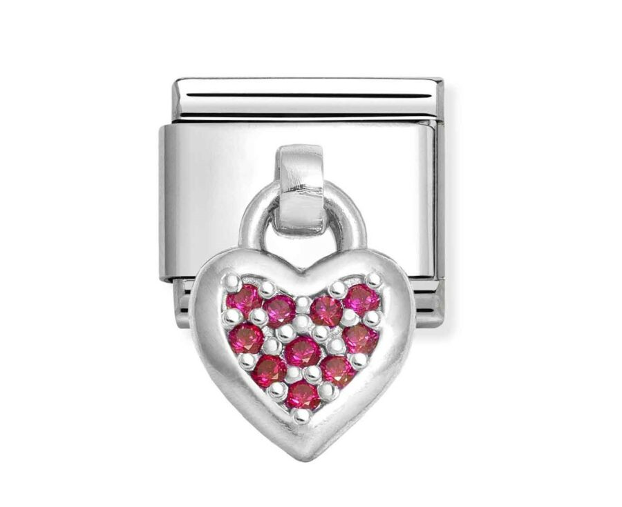 Original Nomination Classic Link in stainless steel and sterling silver with Heart pendant symbol with Red Cubic Zirconia. The coloured Cubic Zirconia used in this item may be subject to very slight variations in colour. Made in Italy. Choose this Link for someone you love!