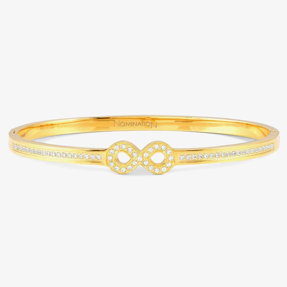 Yellow Gold Infinity Bangle with White Cubic Zirconia (Small)