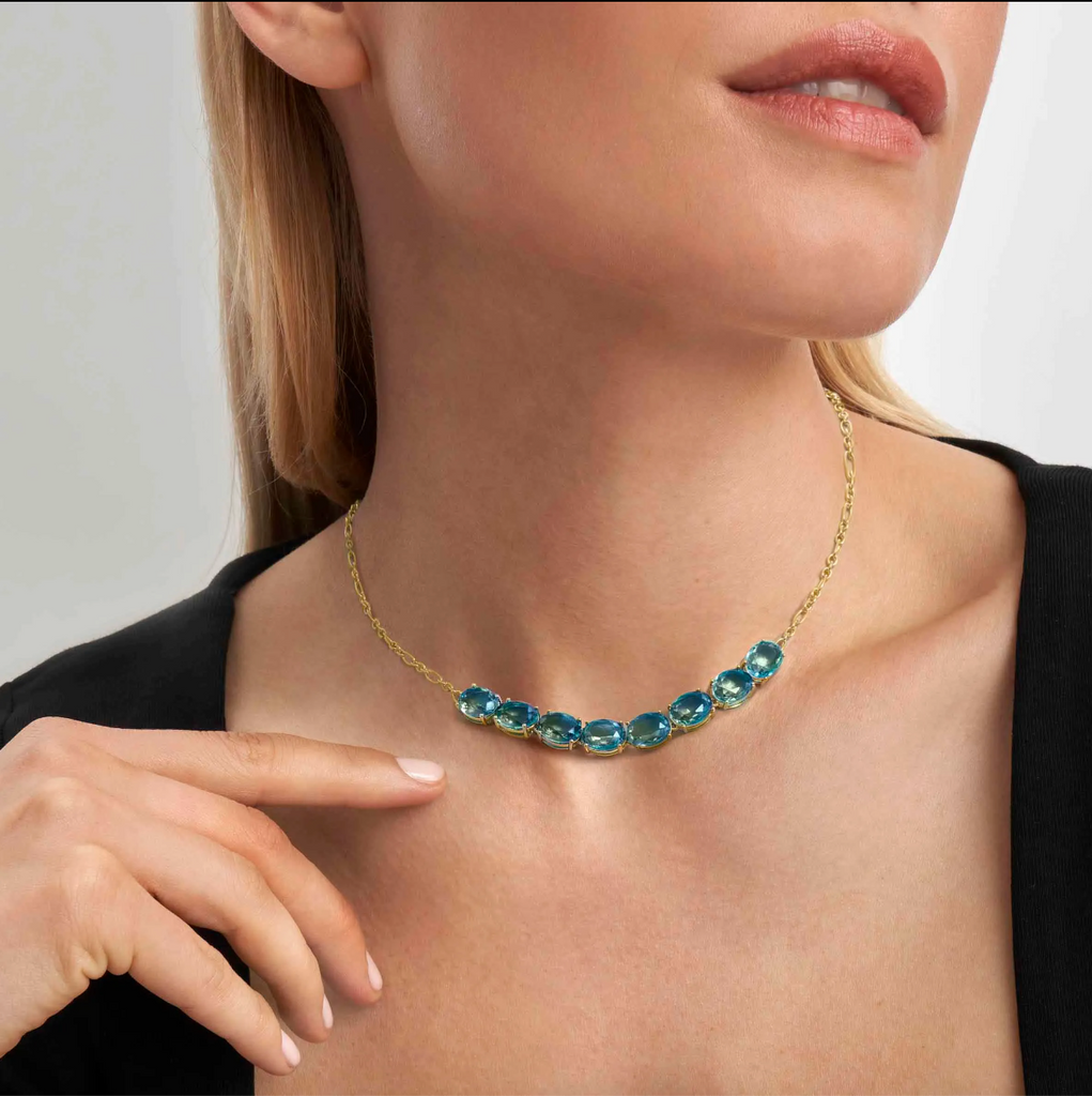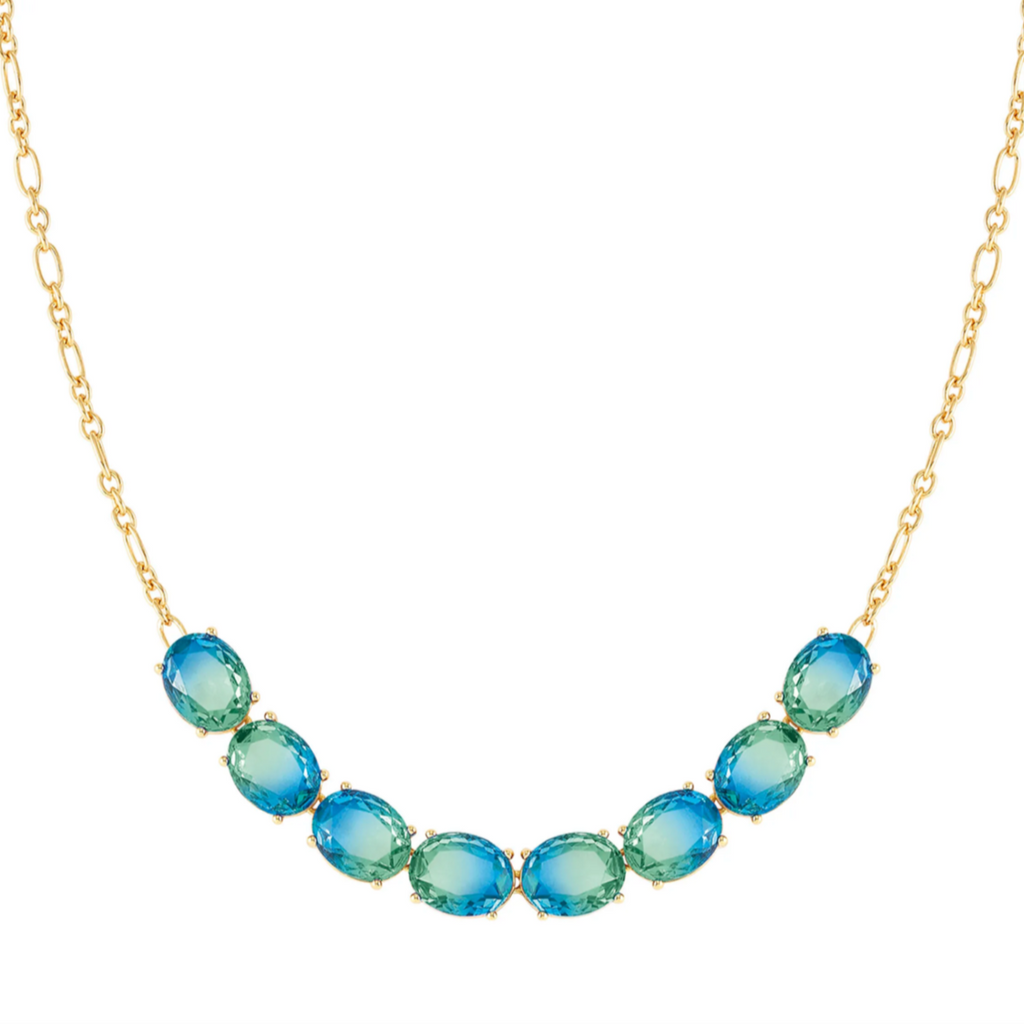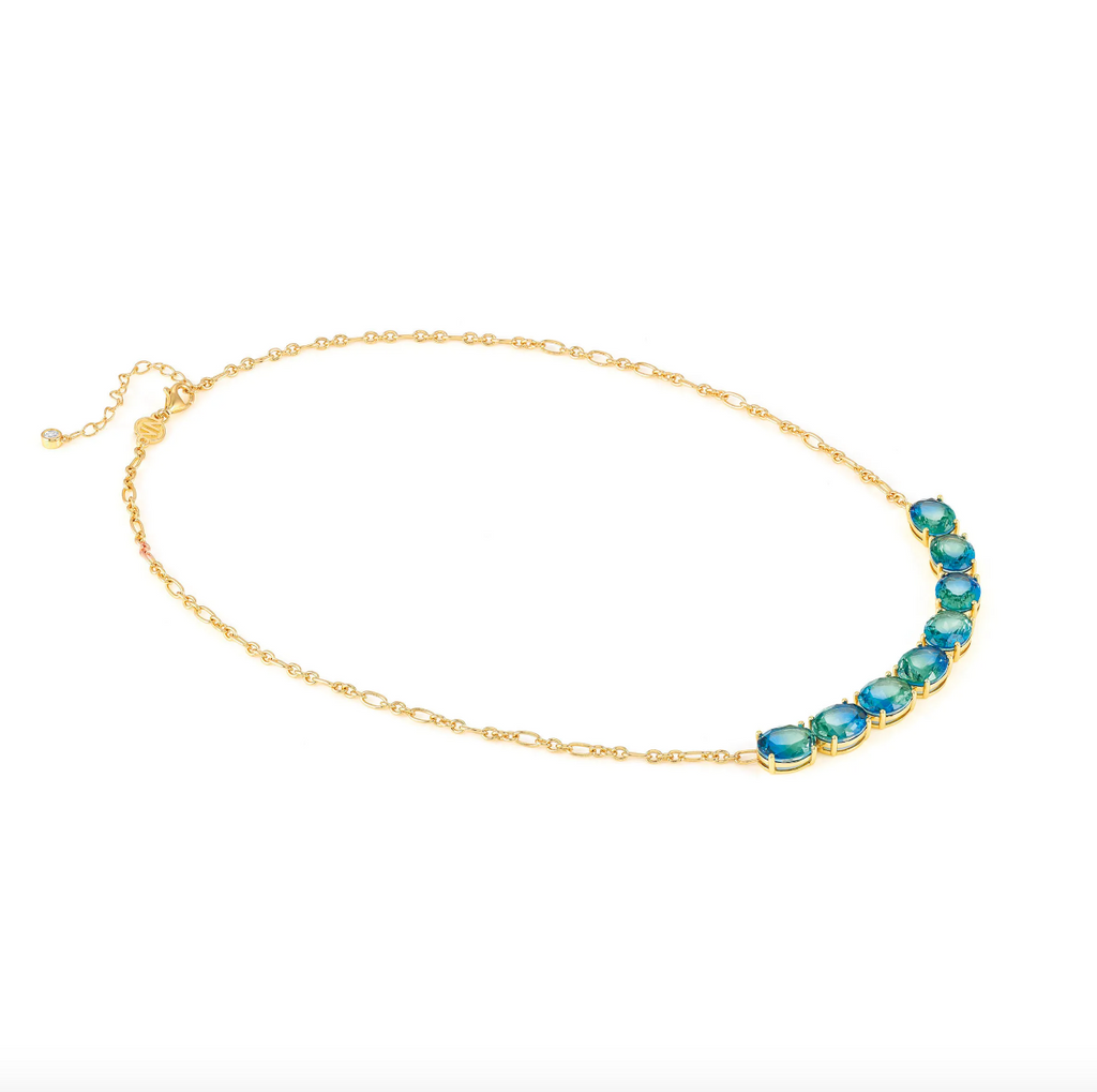 Symbiosi Yellow Gold Tone Blue-Green Ombre Stones Necklace