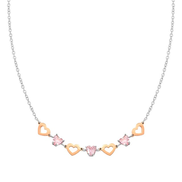 Principessina Rose Gold Plated Pink Cubic Zirconia Heart Necklace