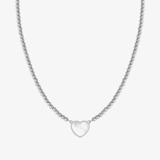 Emosfere Silver Mother Of Pearl Heart Ball Bead Necklace