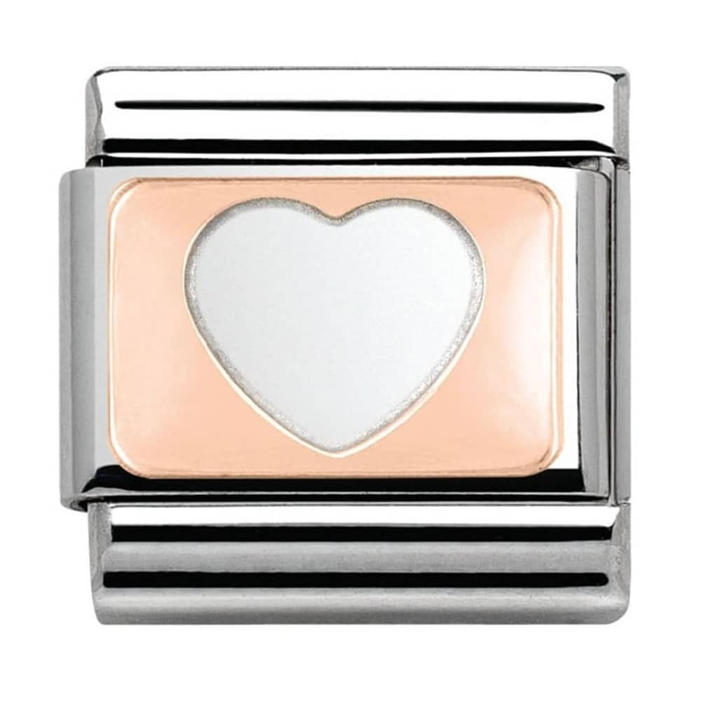 Original stainless steel Charm for Nomination's Composable Classic Bracelet with details in 9K rose gold. Made in Italy. A heart from the Rose Gold Collection is perfect as either a declaration of love or as a friendship gift.