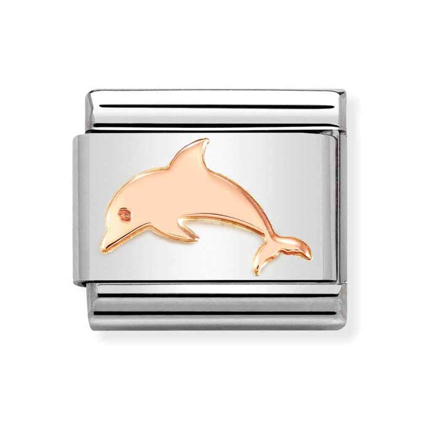 Original Nomination Classic Link in stainless steel and 9K rose gold with Dolphin with Heart symbol. Made in Italy. The dolphin is a symbol of purity - the perfect gift for a true and loving friend.