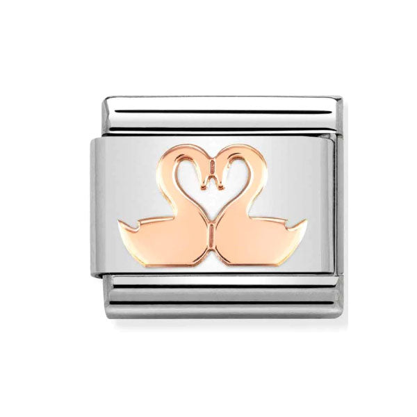 Original Nomination Link for Composable Classic Bracelets in stainless steel and 9K rose gold with Swans symbol. Made in Italy. Two sweet Swans to symbolise the purest of loves.