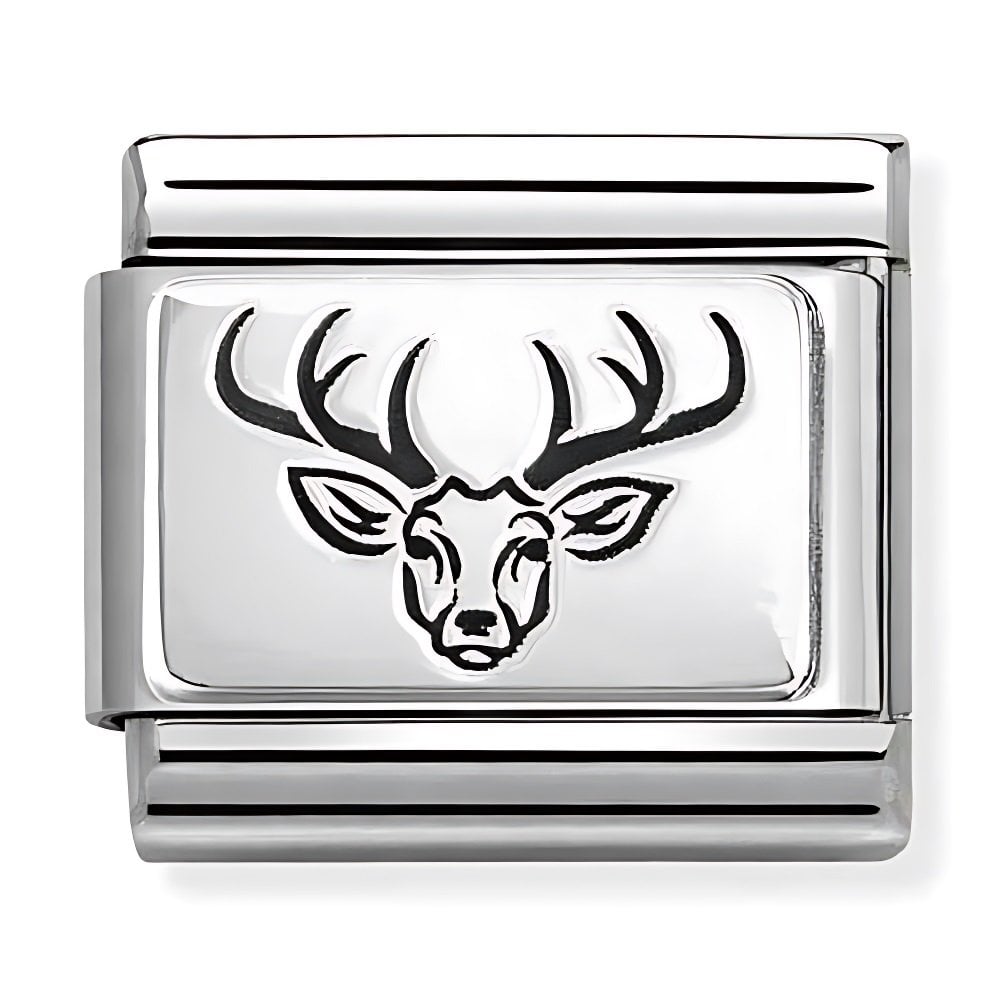 Composable Classic size charm in stainless steel with sterling silver Stags Head symbol.