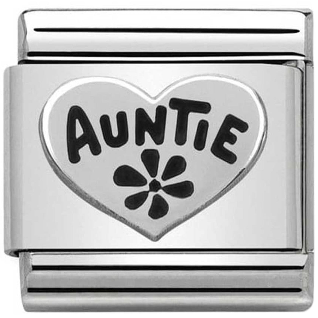 Charm for Original Classic Composable Bracelet in stainless steel and sterling silver with Auntie writing.