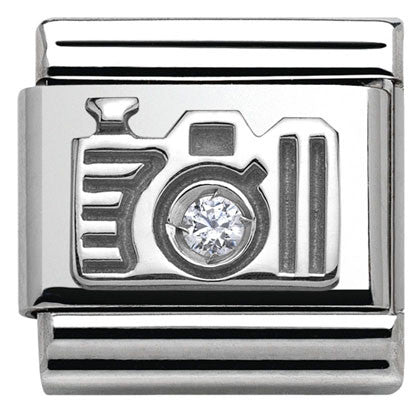 Stainless steel Original Nomination Classic Charm for Composable Bracelet with Camera symbol in sterling silver and Cubic Zirconia. Made in Italy. Choose your favourite symbol and tell your story with Composable!