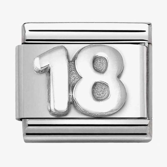 The Nomination Composable CLASSIC 18 Charm 330101/56 features a sterling silver plate with an oxidised 18 design which is set on a stainless-steel base. The perfect memento to remember a special birthday