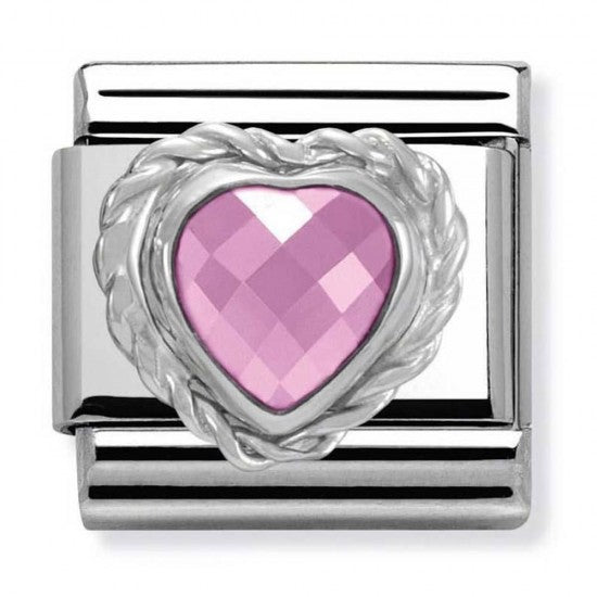 Composable Classic Silver Pink Crystal Heart Link