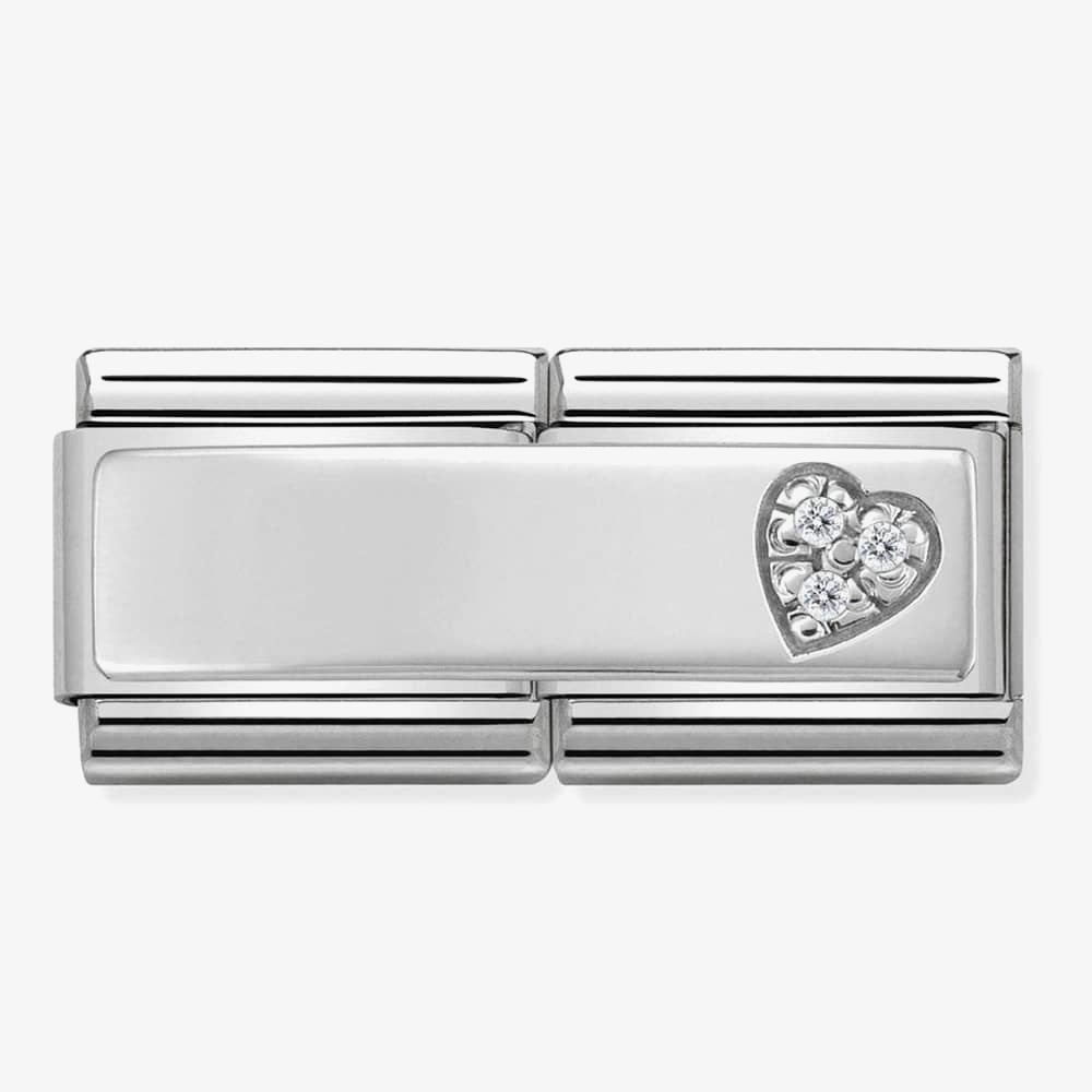 Composable Classic Silver Cubic Zirconia Heart Double Link