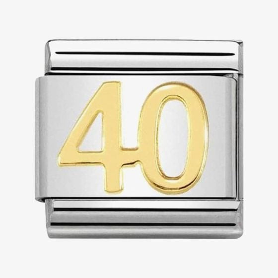 The perfect Nomination charm for that special anniversary, whether it is for someone's 40th birthday or a wedding anniversary. Consisting of a stainless steel link complete with a large gold tone number 40 in the centre.
