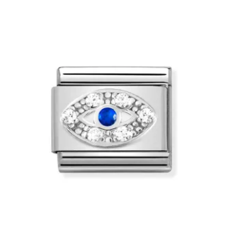 Original Nomination Link for Composable Classic Bracelets in stainless steel with sterling silver and Blue and White Cubic Zirconia on Eye symbol. Made in Italy. Choose this symbol of protection for everyday of your life.