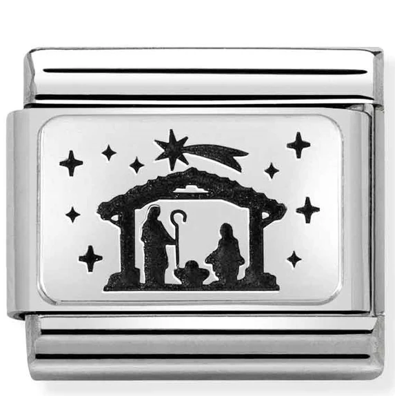 Create that magical festive feeling with the Classic Silver Nativity Charm from Nomination. Crafted from stainless steel and sterling silver, this charm features an intricate engraving of the classic nativity scene, making this a special gift idea.