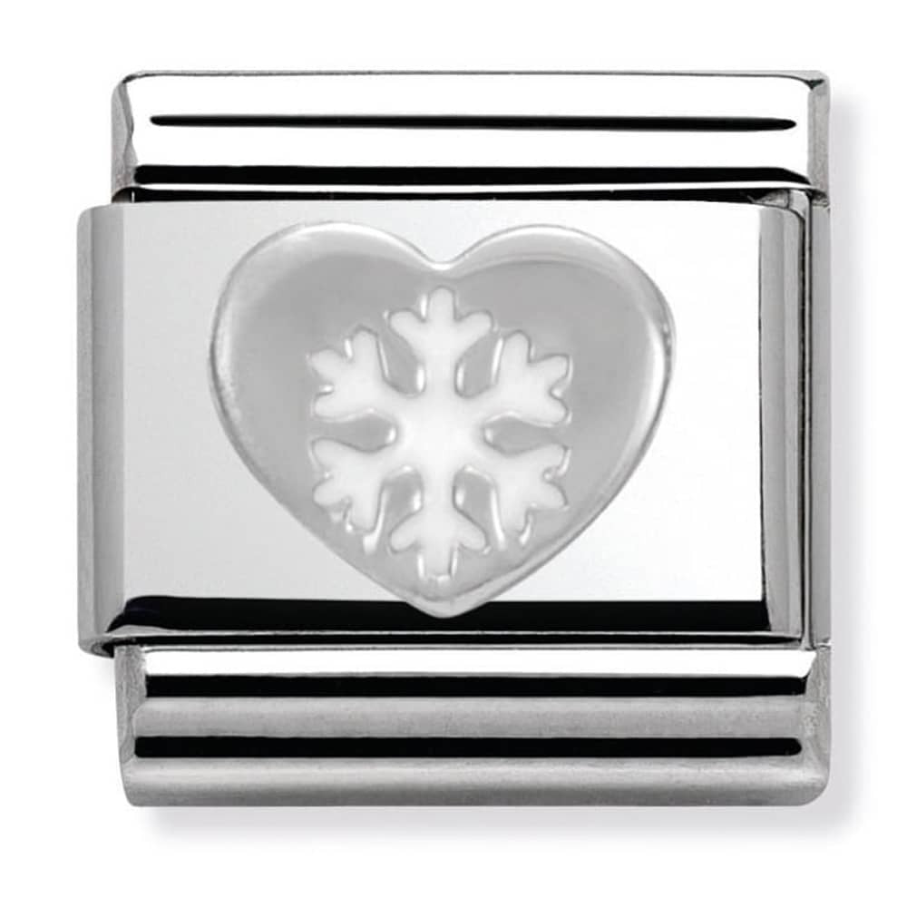 Nomination Original Charm for Composable Classic Bracelet with Heart with Snowflake symbol in stainless steel, sterling silver and enamel. Also available in other Christmas symbols. Made in Italy. Show your holiday spirit with a precious Charm.