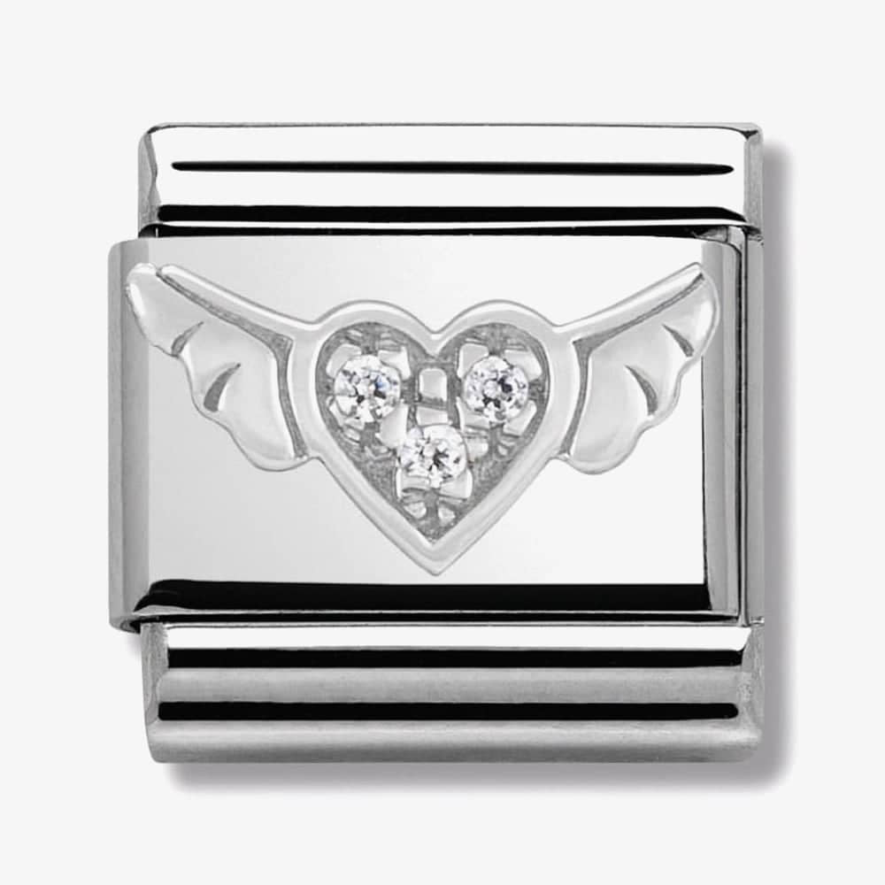 Original Charm for Nomination's Composable Classic Bracelet with Flying Heart in stainless steel, sterling silver and white Cubic Zirconia. Made in Italy. Let your love soar.