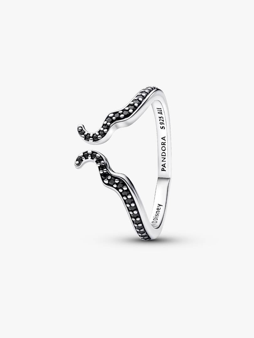 Enter your villain era with this sterling silver ring inspired by Disney's Maleficent. An open design lined with black man-made crystals, it resembles her iconic horns. A shimmering reminder to own your power.