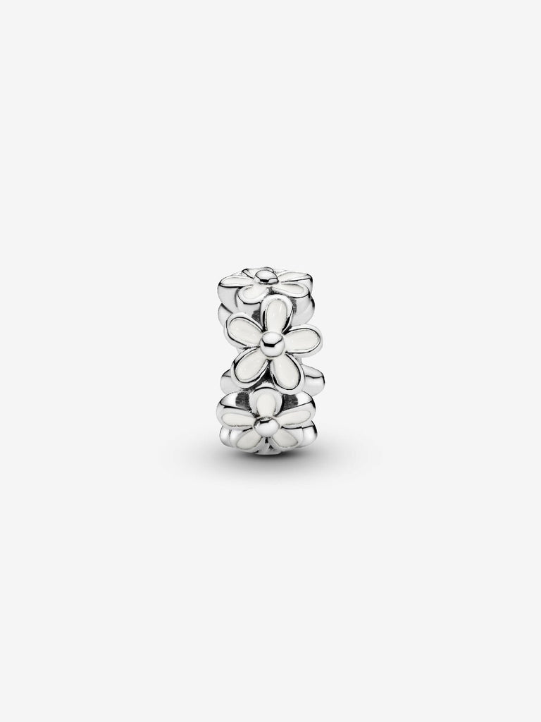 Symbolise innocence, purity, freedom or fortitude. This charm is covered with white enamel daisies as a nod to the popular daisy chain. Crafted in sterling silver, this spacer charm lends natural appeal to your favourite carrier.