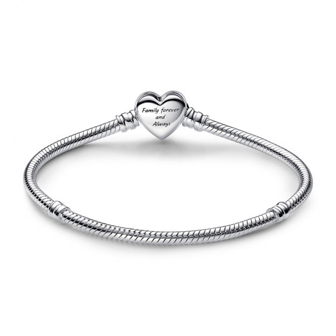 A romantic take on our bestselling snake chain bracelet. The heart-shaped clasp of this sterling silver chain is entwined with an infinity symbol. The detailed openwork design and sparkling cubic zirconia give an extra dimension to everlasting love.