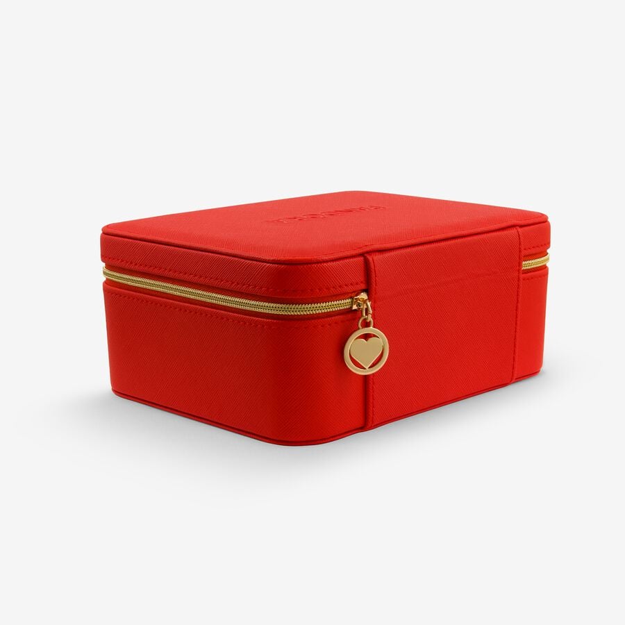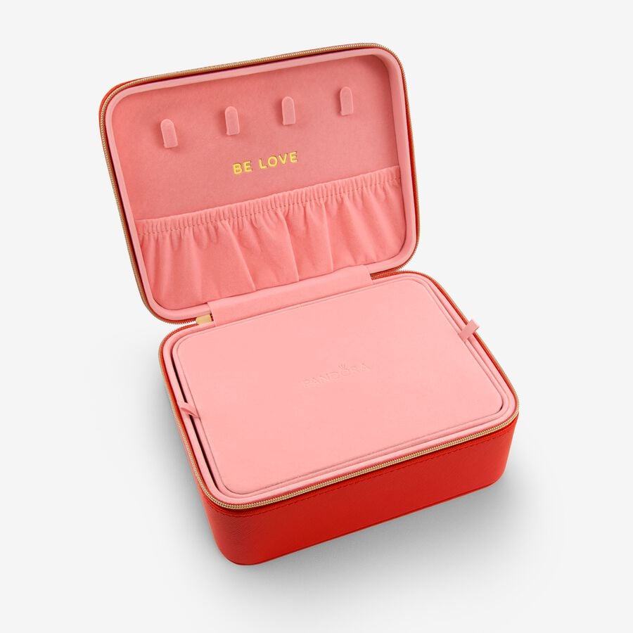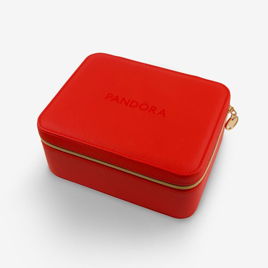 Store your Pandora jewellery in style with this gorgeous jewellery box. The red box is embossed with the Pandora crown o monogram and features a golden zip that also features our monogram. Inside the box, you’ll find room to store your much-loved bracelets, charms, rings, necklaces and earrings. Also includes a mirror to help you style your look.