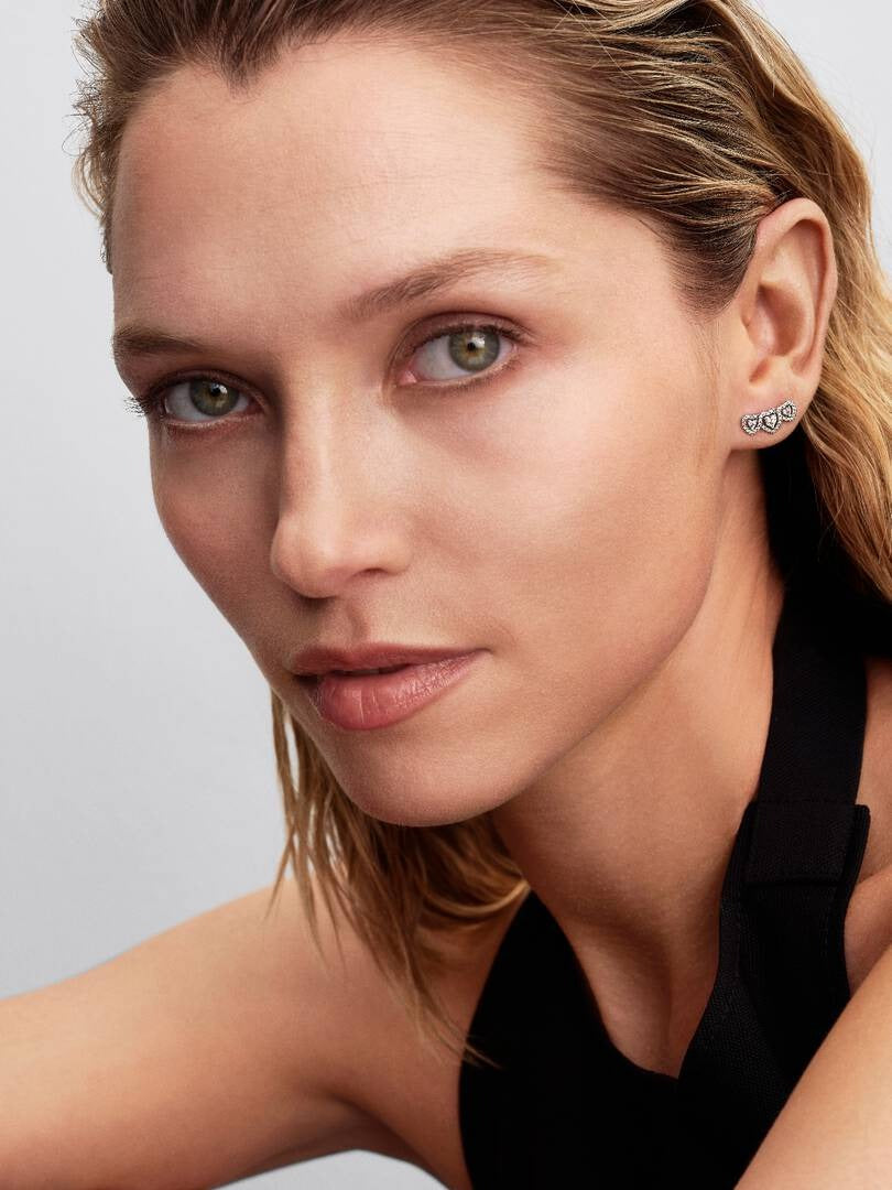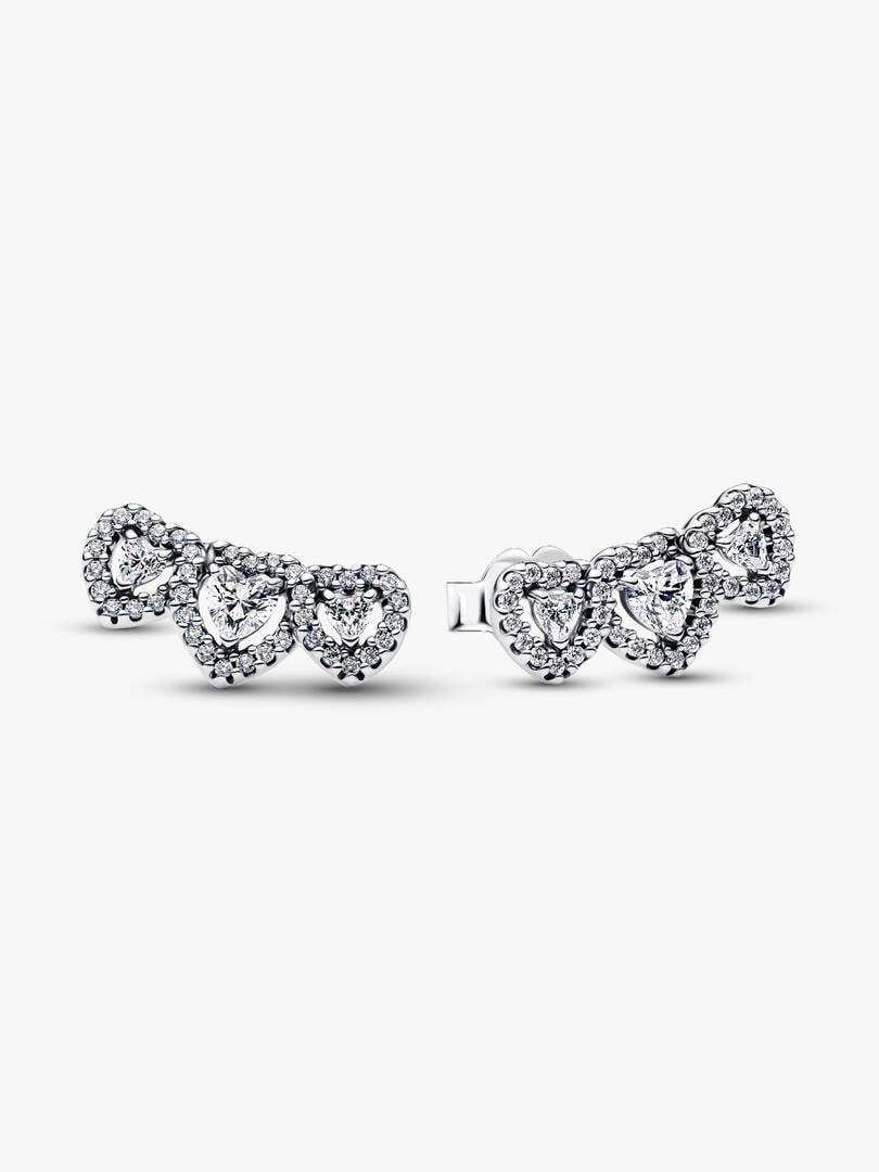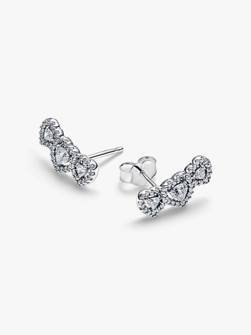 Sterling Silver Triple Cubic Zirconia Heart Studs