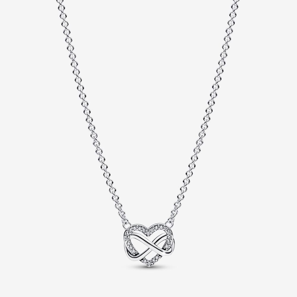 Sterling Silver Sparkling Infinity Heart Collier Necklace 50cm