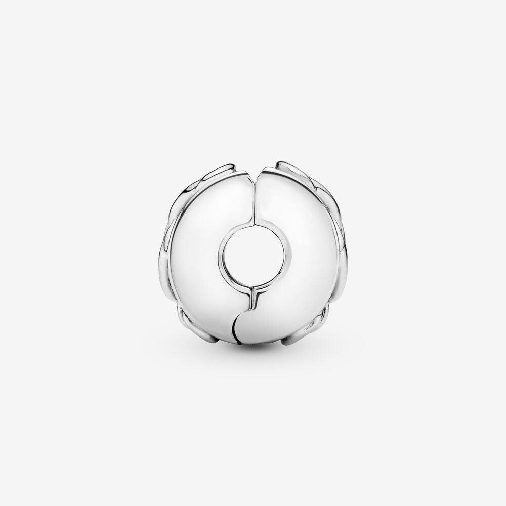 Our simple yet striking Pandora Moments clip charm is decorated with a row of knotted hearts. The design features a combination of the iconic heart and the classic love knot, which gives the piece extra emotional appeal. The sterling silver charm is perfect for adding a heartfelt touch to your bracelet collection and helps to evenly space out your stack. This clip charm features no silicone grip, so it will slide if not styled onto threads (two raised charm dividers).