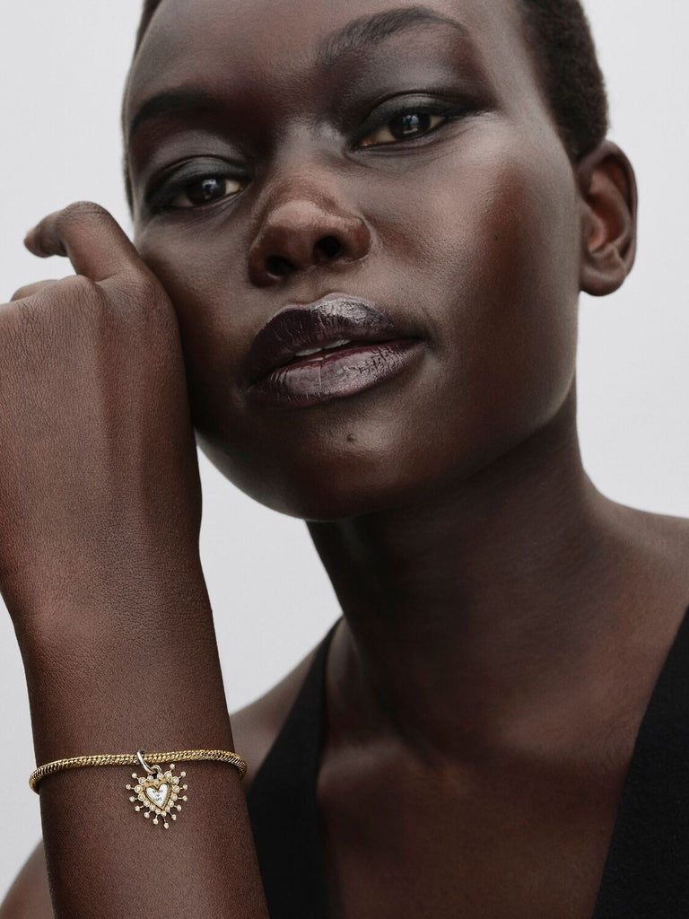 Yellow Gold Plated Radiant Heart Double Dangle Charm